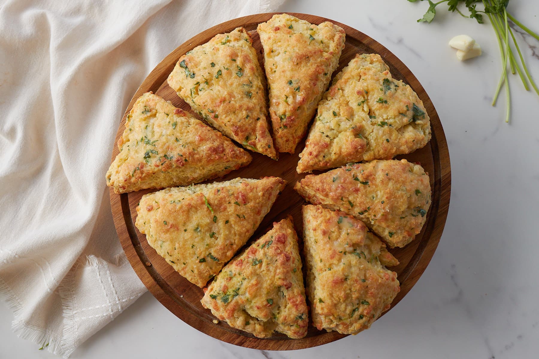 - Garlic – The fresh garlic in the scones can be replaced with a teaspoon of garlic powder. You can also swap the garlic powder in the butter mixture with fresh garlic or remove it altogether. If you love garlic, be sure to try my Sourdough Garlic Knots too!