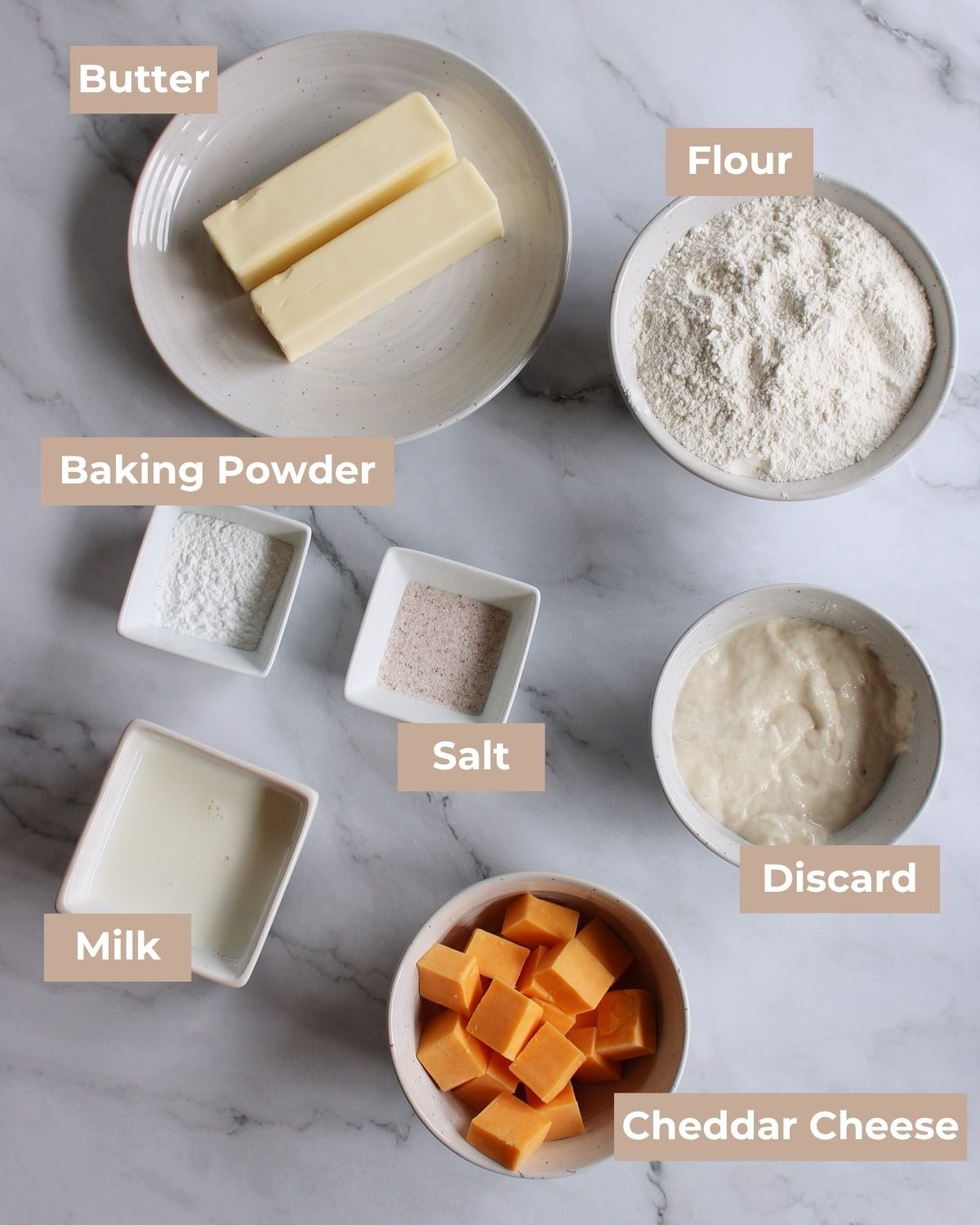 - Sourdough discard: A lot of biscuit recipes call for buttermilk, but the sourdough discard will give you a similar tang and tenderness that buttermilk does.