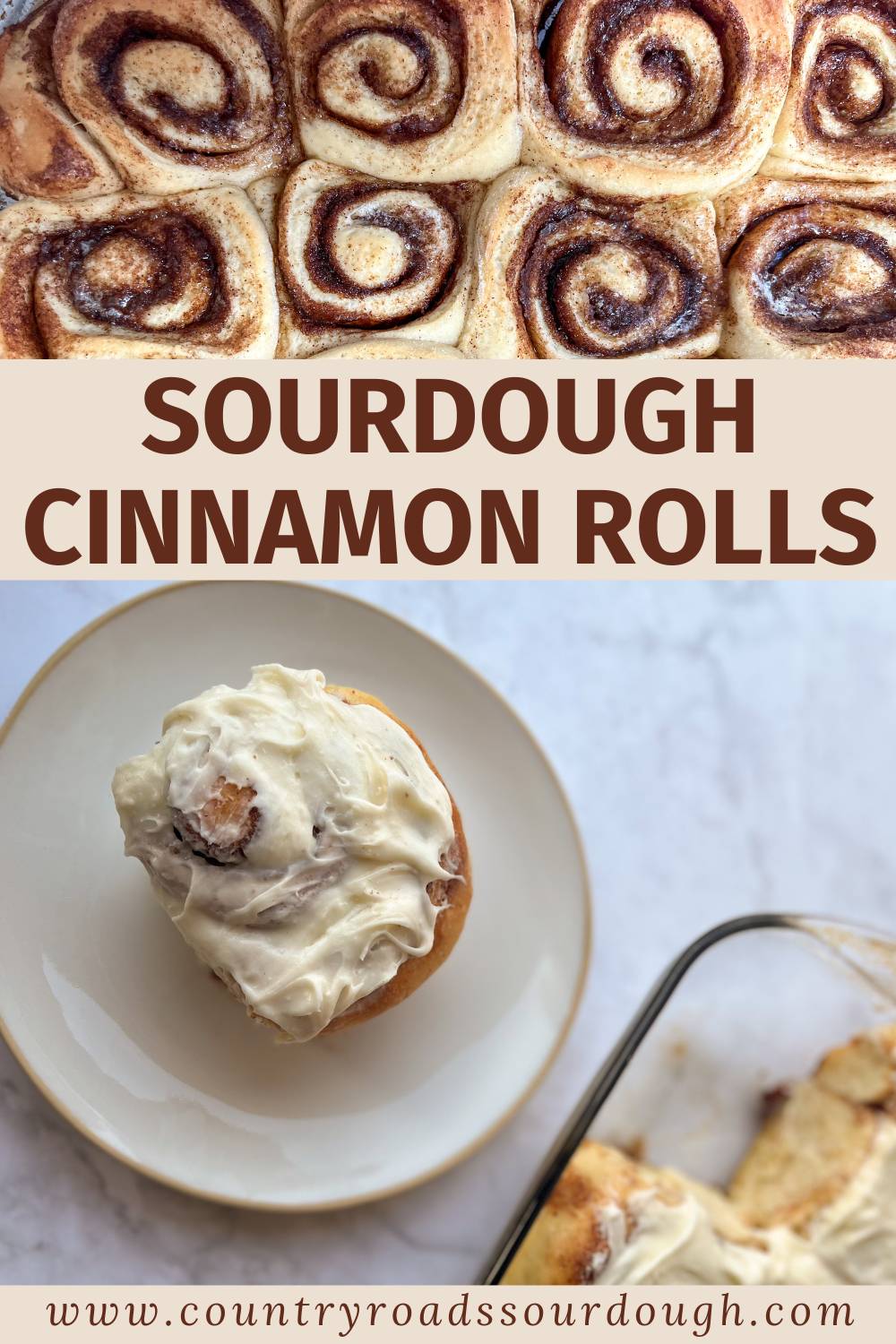 Soft and fluffy cinnamon rolls with a gooey cinnamon filling and topped with a cream cheese frosting. This recipe is the classic cinnamon roll you know and love naturally leavened with sourdough starter.