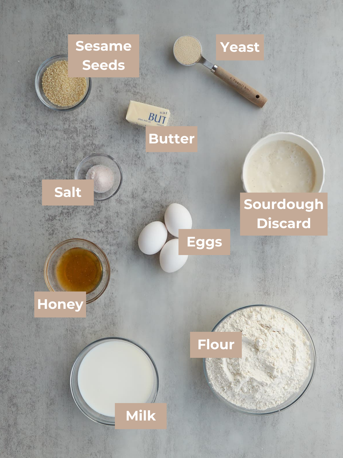 • Sourdough discard – For a quick rise, use room temperature discard. You can use cold discard from the fridge, but it will slow down the rise time.