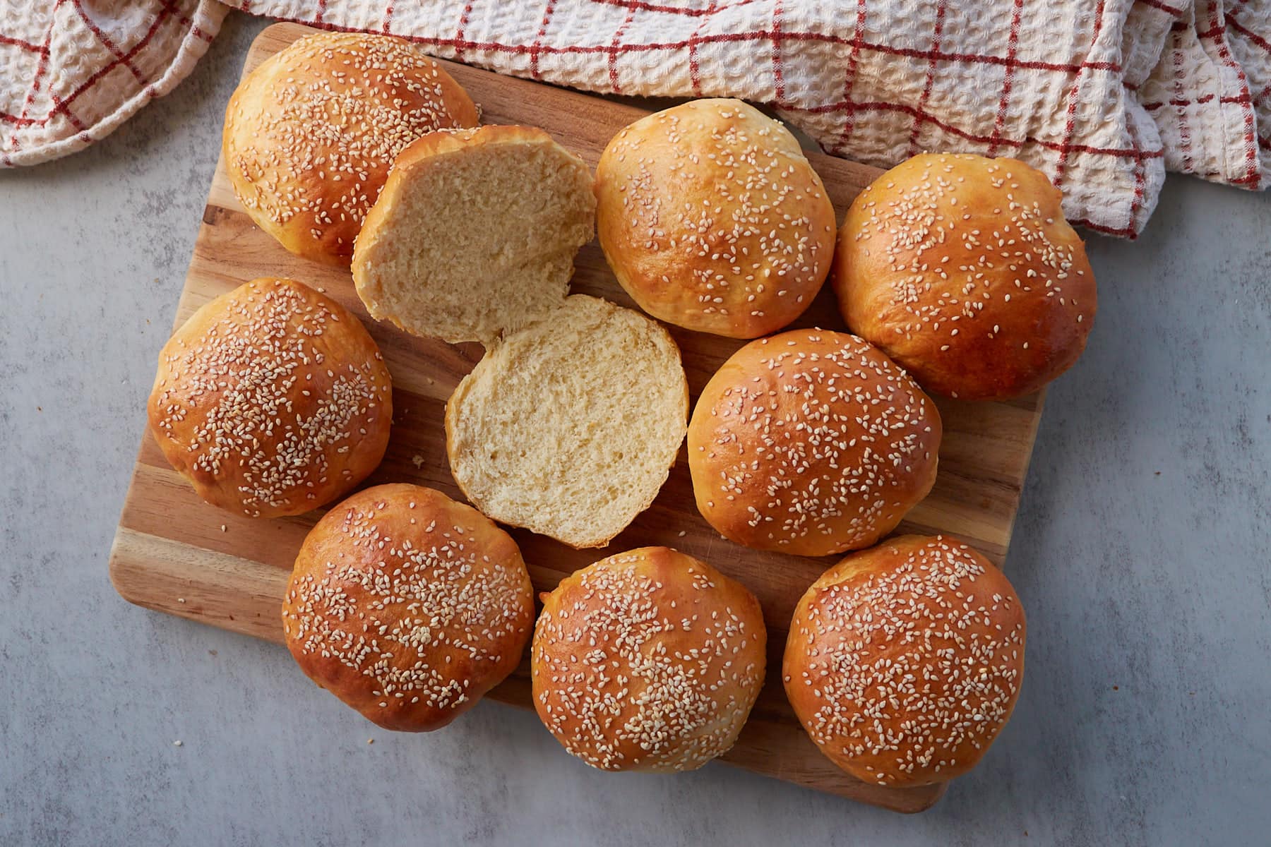 • Tip for flattening buns: If the dough balls immediately spring back when flattening them into discs, let them rest for 10 minutes and then try again.