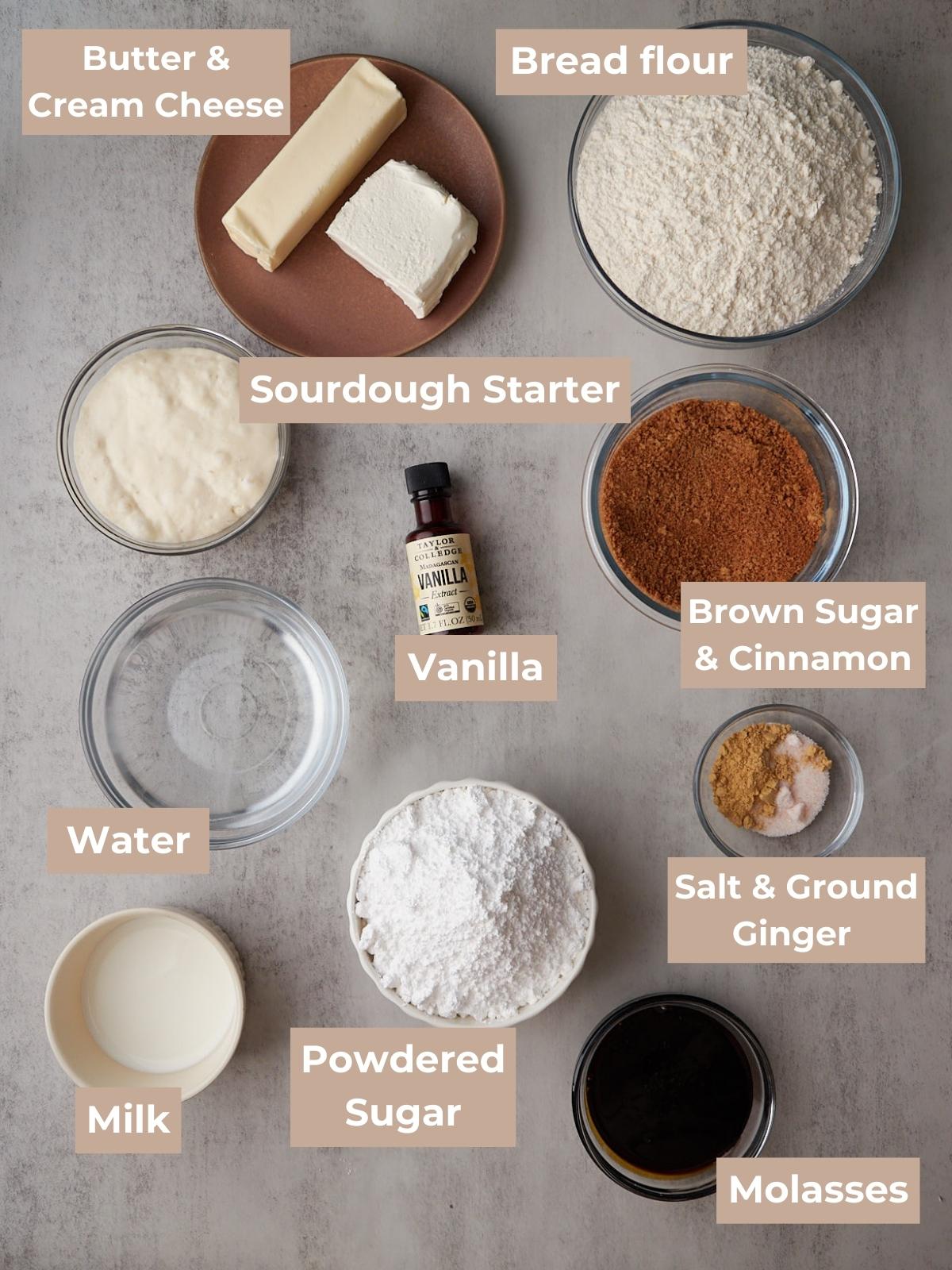 - In a large bowl or straight edge container, mix together all the ingredients except for the flour until the starter is dissolved. Add the bread flour and mix until the flour is fully combined. The dough will be wet and sticky. Let it sit in a warm spot covered for about 30 minutes. I like to cover with a lid or dinner plate instead of a tea towel so that the dough doesn’t dry out. 100 grams molasses, 320 grams water, 150 grams active sourdough starter, 10 grams salt, 6 grams ground ginger, 10 grams Taylor & Colledge Organic Madagascan Vanilla Extract, 500 grams bread flour