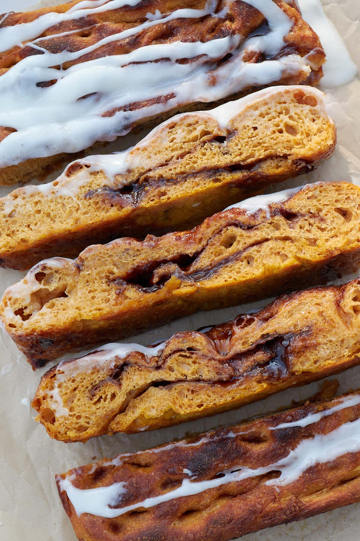 - Cinnamon – complements the pumpkin flavors so well. If you love cinnamon flavor be sure to check out my cinnamon roll sourdough focaccia as well.