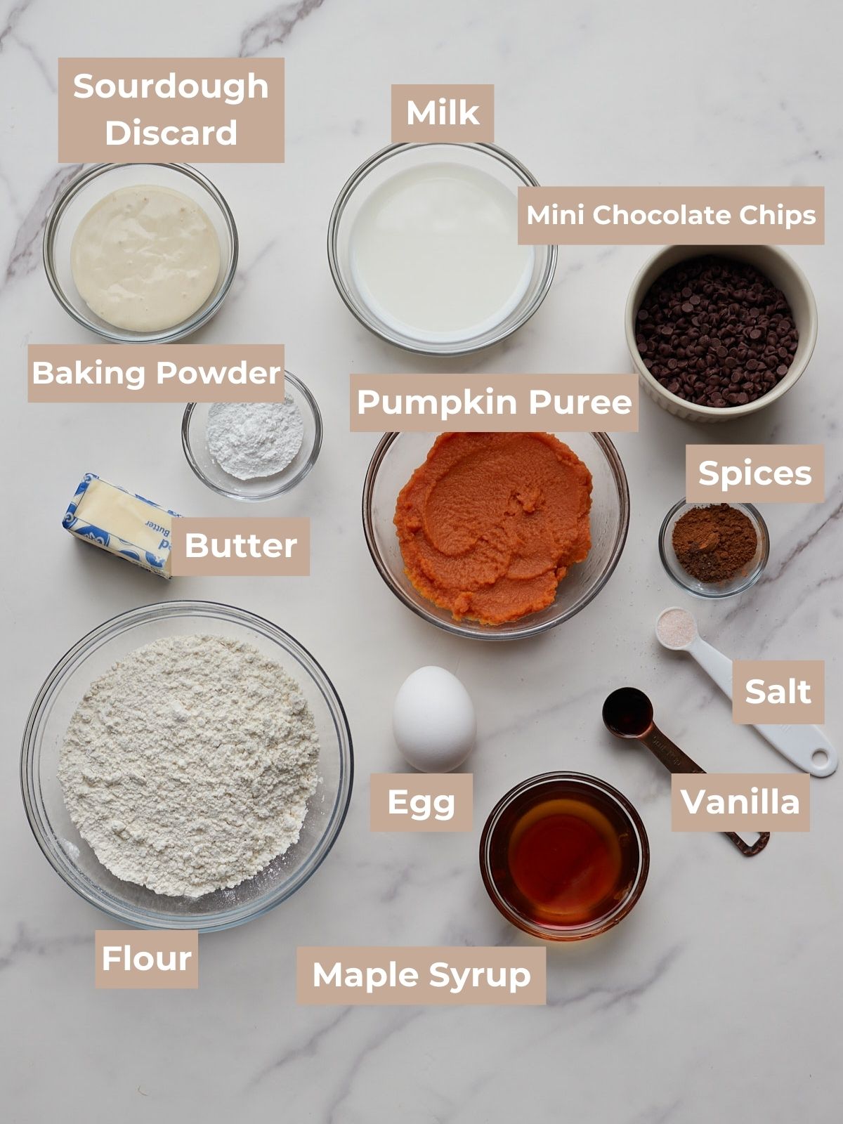 - Mix together the maple syrup, melted butter, milk, sourdough discard, pumpkin puree, vanilla extract, and egg until combined.80 grams maple syrup, 60 grams unsalted butter, melted, 100 grams milk, 60 grams sourdough discard, 120 grams pumpkin puree, 5 grams vanilla extract, 1 large egg