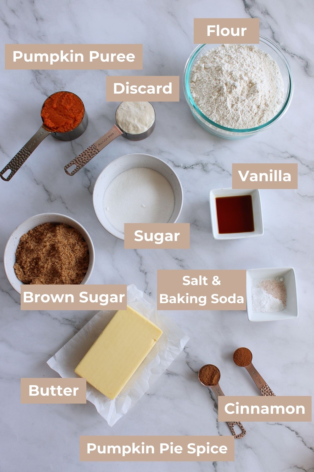 125 grams pumpkin puree, 75 grams sourdough discard, 13 grams vanilla extract